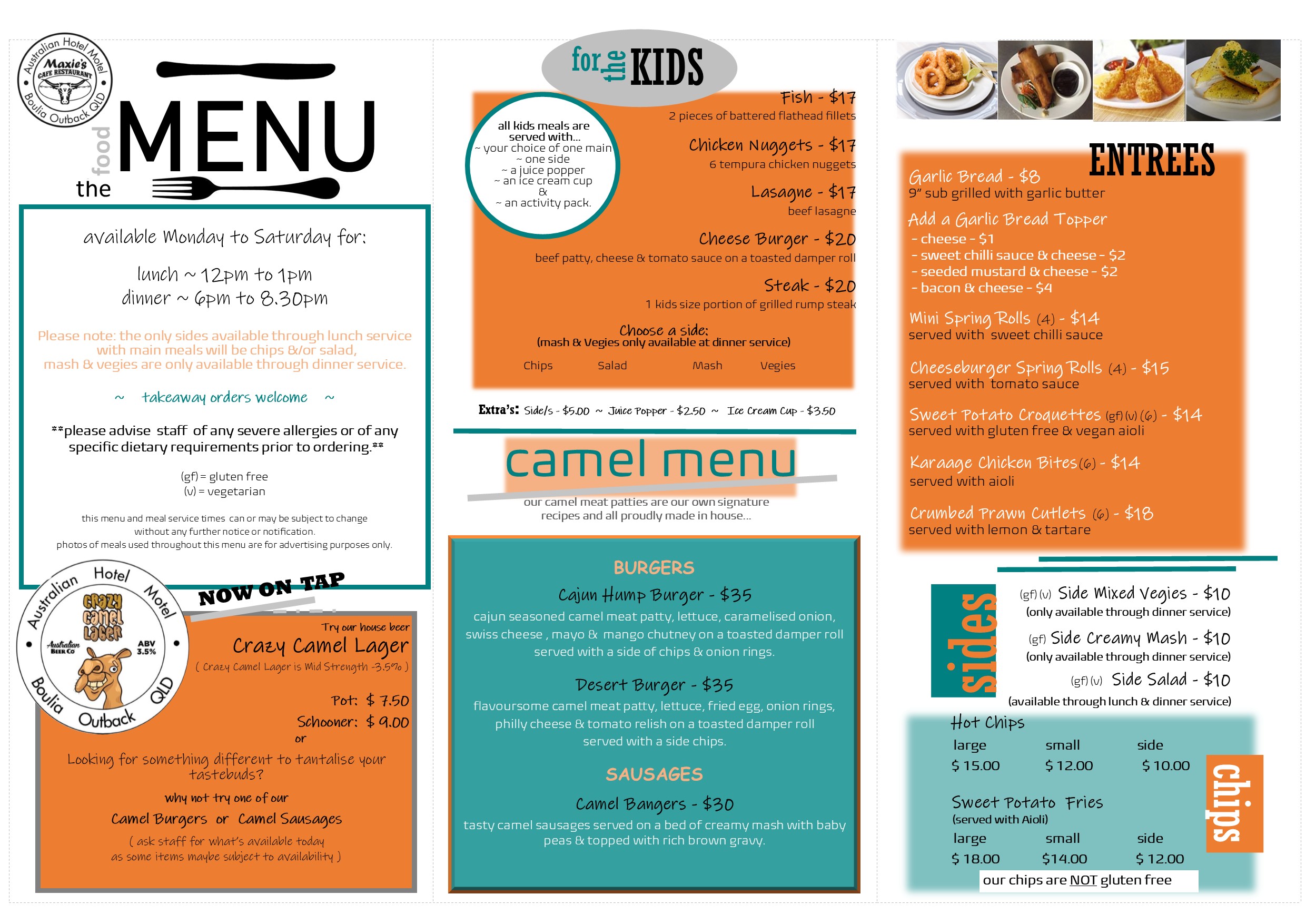 Available from 9.30am everyday - Cafe Food items not available through Dinner Service Times